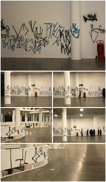 Cerca de 30 pixadores invadiram a Choque nesse sábado e mandaram all over the place suas palavras de[s]ordemem protesto à comercialização, institucionalização e domesticação da cultura de rua, por parte dos galeristas e do poder público“.