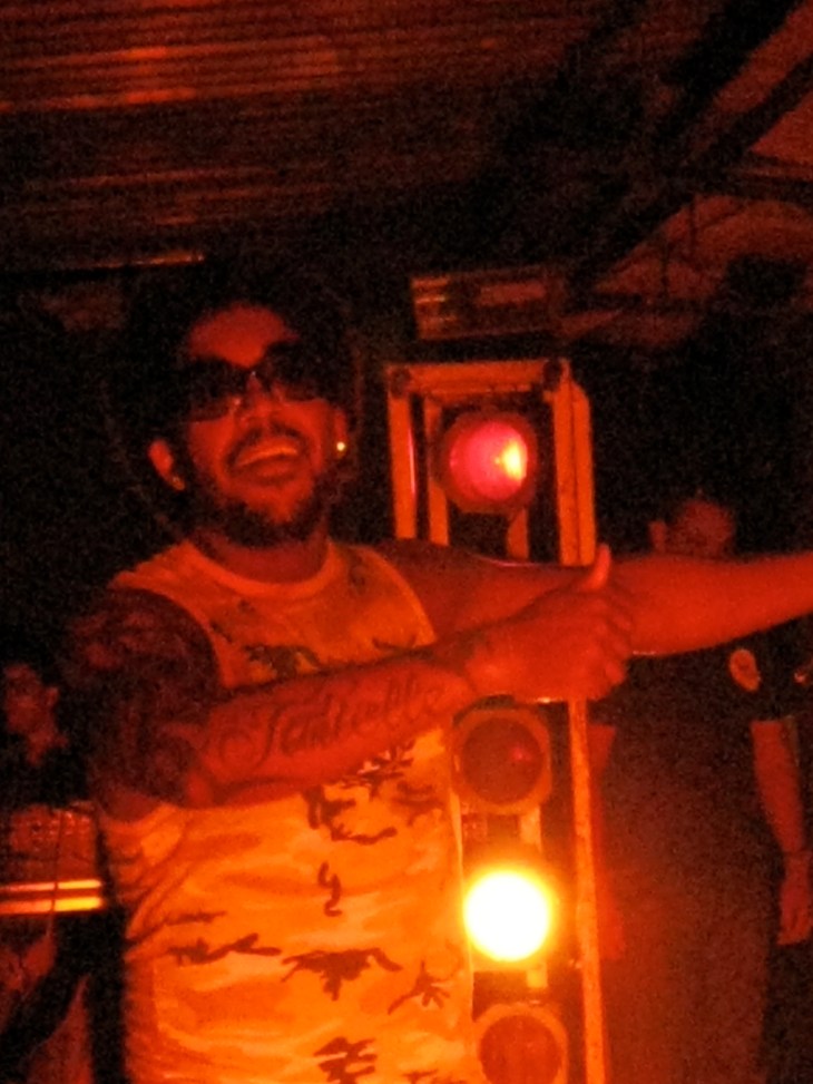 “Uma vez, num show para uma rádio, lugar aberto, eu vi um cara pegar uma camiseta, enrolar no cano e estourar a cabeça de um cabra. Bem na minha frente!“, gritava ao meu ouvido um dos produtores, Guilherme Bota. “Mas em baile como este só rolam mesmo brigas de futebol ou por ciúme, gaia. Já em boate gay e casa noturna bacana não pega nada. Durante o show mesmo do João briga é difícil – e ele já tocou pra todo tipo de público, de baile universitário a festa de ministro. É que o cabra olha pro palco, vê o João zuando e perde a vontade de ir pro pau“, desenrola. O dono da casa, um redondo vereador com pretensões à prefeitura, interrompe o show para fazer proselitismo em cima do sucesso de João. “Assim como este talentoso compositor veio do morro e está fazendo sucesso em todo o Estado, comigo a voz humilde de Camaragibe será ouvida nas instâncias superiores do poder“, discursa o gordinho, sotaque de filho de usineiro.