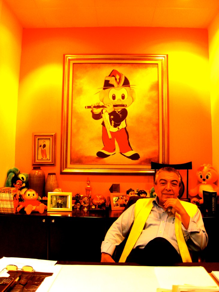 Sempre equipado de um sorriso infantil (e quando deixa de sorrir o desenhista dá lugar a um empresário de semblante quase mafioso), concede todas as entrevistas que consegue, revisa capas de suas revistas, confere esculturas de seus personagens que habitarão um futuro museu e dá bronca num funcionário que havia pendurado um quadro sem simetria (“Pode uma coisa dessas, no estúdio de um desenhista um quadro torto?”, brincava, mas sinceramente contrariado). Ora ou outra interrompia o papo para assinar contratos intermináveis – aliás, aviso aos falsários: sua rubrica não tem nada a ver com a assinatura imortalizada ao fim de tantas HQs criadas ao longo de 50 anos.