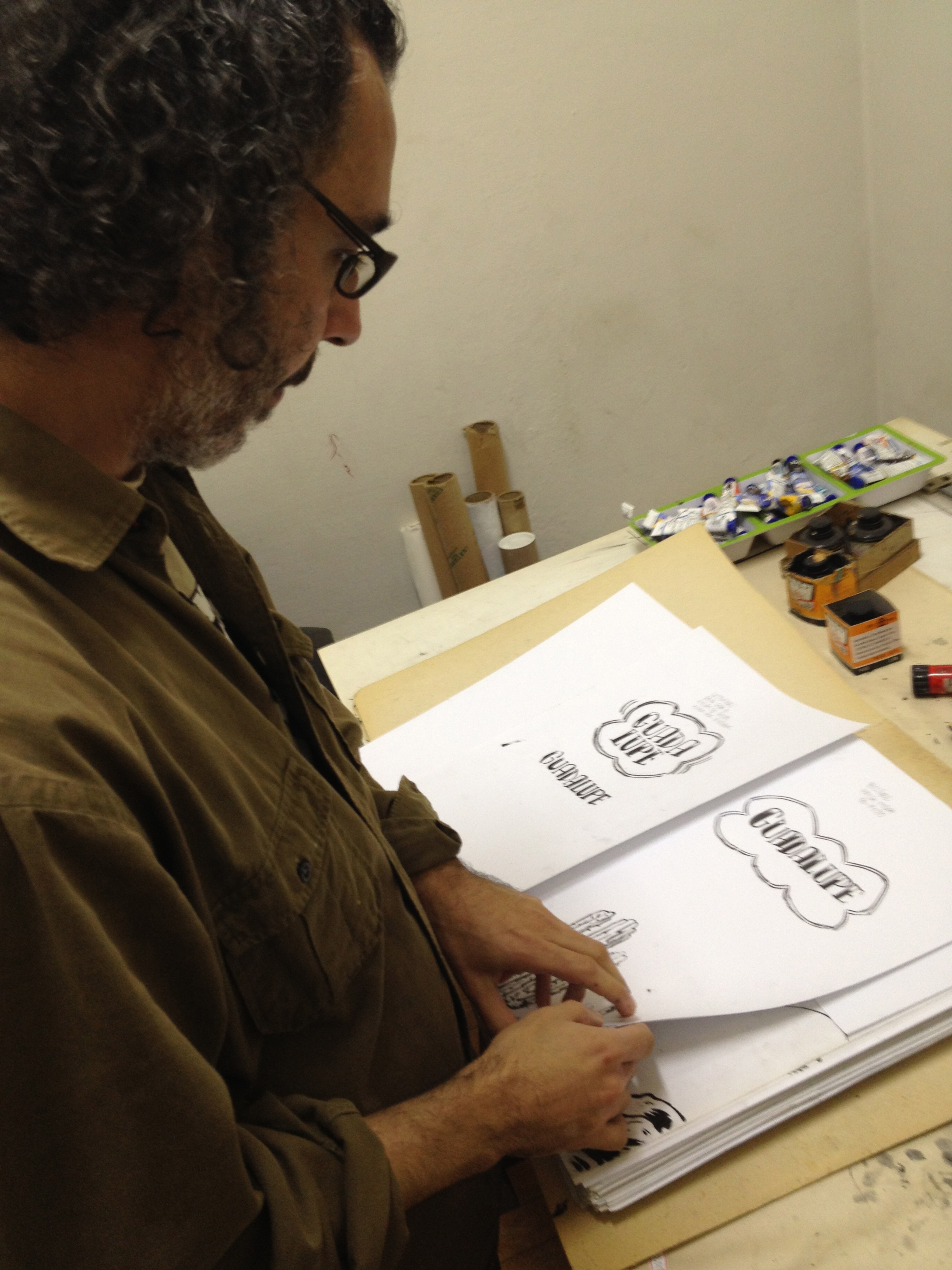 Depois entraram cogumelos alucinógenos rituais, deuses histéricos, comédia ligeira e o Village People“, conta ele, que foi convidado pelo escritor Joca Reiners Terron – responsável pelos “casamentos” entre desenhistas e escritores na série de romances gráficos a sair pela Companhia das Letras – para passar o lápis no roteiro da vizinha. “Meus originais contam a história do processo tortuoso que foi chegar àquelas imagens. Por isso o México de Guadalupe é bem flexível, um cenário leve para uma história imaginativa, um México pessoal, meio pesquisado, meio inventado e atravessado por coisas que vi ao longo do tempo“, reflete o artista.