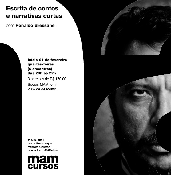 Ronaldo Bressane (SP, 1970) formou-se em Comunicação na FAAP e Letras na USP. Passou por redações como Trip, seLecT e Alfa, e colabora em veículos como Estadão, Bravo! e Cândido. É autor dos romances Escalpo (Reformatório) e Mnemomáquina (Demônio Negro), Sandiliche (infanto-juvenil, Cosac Naify), V.I.S.H.N.U. (quadrinhos, Companhia das Letras), Metafísica Prática (poesia, Oito e Meio) e organizador da antologia de contos Essa História Está Diferente (Cia das Letras), entre outros. Ministrou laboratórios de ficção e não-ficção no Espaço Cult, na Casa das Rosas, no MAM, no Centro Cultural B_arco, na Casa do Saber, na UNIL, no Birô e em variadas unidades do Sesc de todo o país. Apresenta o programa Fluxo de Consciência, da revista Pessoa (revistapessoa.com) e do estúdio Fluxo de jornalismo (fluxo.net), e coordena a imprensa no Centro Cultural São Paulo. Seu site é ronaldobressane.com.