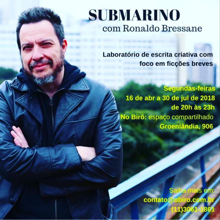 Já temos uma meia dúzia de tripulantes, então ainda há vagas para começar o Submarino agora em 16 de abril. Submarino é meu laboratório para quem tem fôlego e disposição de mergulho na escrita de ficções breves. Está ancorado no Birô, na rua Groenlândia, quase esquina com a Nove de Julho.