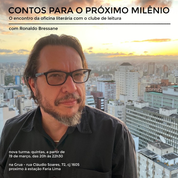 Mix de oficina literária e clube de leitura, este curso já passou por variadas unidades da rede Sesc, Sesi São Paulo, Casa do Saber Casa das Rosas, MAM – Museu de Arte Moderna de São Paulo, B_arco Centro Cultural, Espaço Revista CULT, Tapera Taperá, Instituto Tomie Ohtake, Universidade do Livro… (e um dia prometo criar online). Mais infos em meu site, ronaldobressane.com.