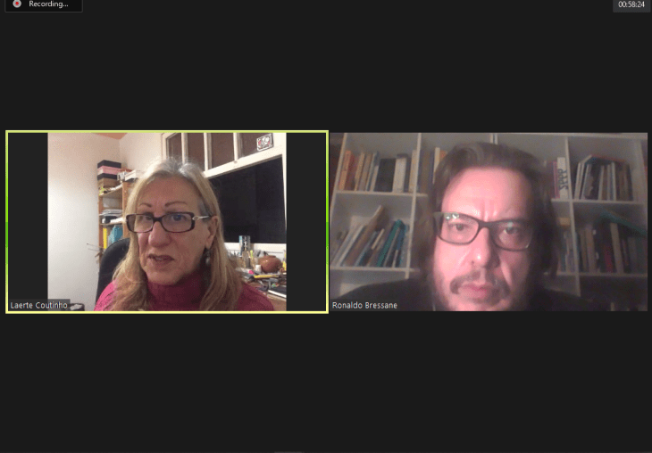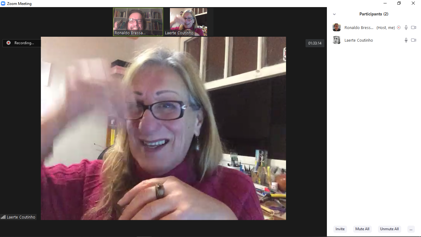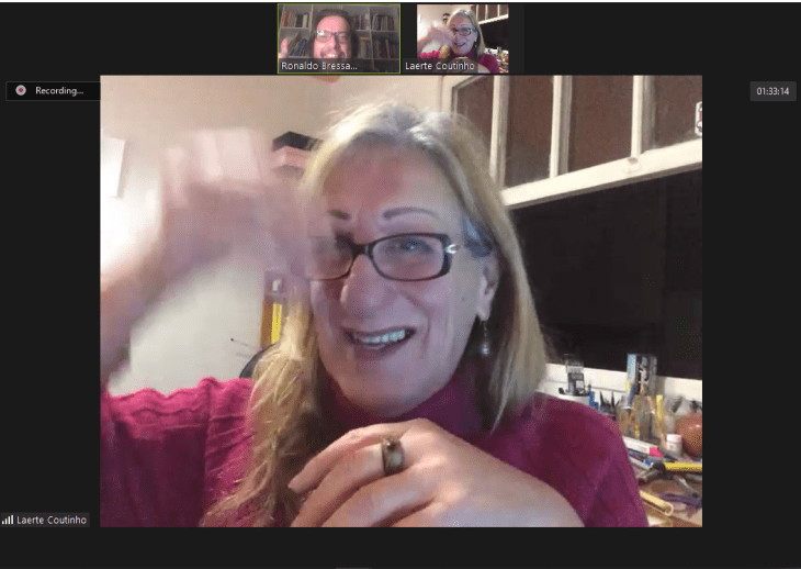 Ninguém consegue falar direito pelo Zoom. Se eu olhar pra você, eu não olho pra você. É impossível olhar no seu olho. E se olhar pra câmara eu não vejo você. A pessoa está ali mas está em outro lugar. Outra sensação curiosa é você poder desligar as pessoas. Eu já achava bárbaro isso no filme 2001, não achava que viveria pra ver isso. As ideias de futuro são muito engraçadas.